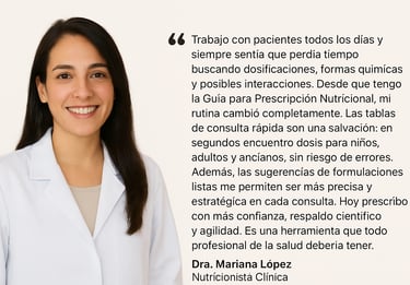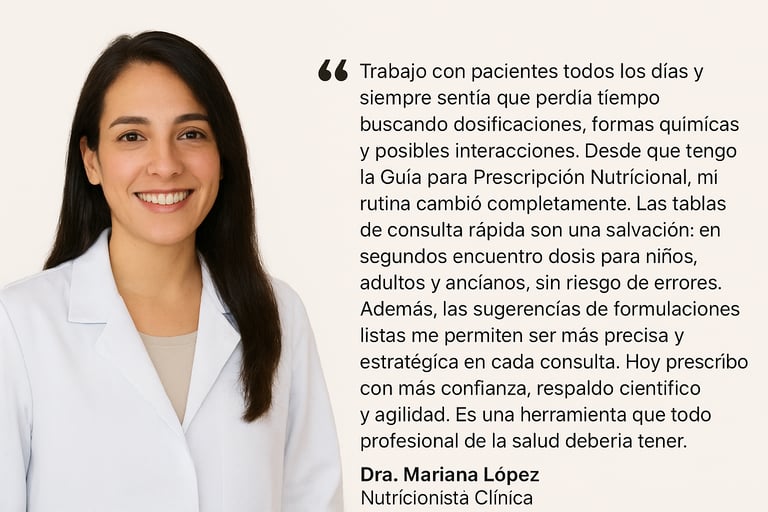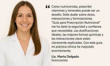 Si eres nutricionista o profesional de la salud, sabes lo desafiante que puede ser la prescripción nutricional. Las dudas sobre dosificaciones, interacciones, formas químicas y seguridad pueden generar inseguridad e incluso comprometer la eficacia del tratamiento de tu paciente.