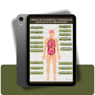 Lámina ilustrativa sobre cómo las vitaminas y minerales actúan en nuestro organismo